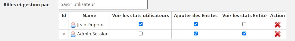 Note : Vous pouvez également donner le droit à des utilisateurs de créer des sessions de formation à l’intérieur de cette structure générale. Ils deviennent alors des administrateurs locaux et peuvent :