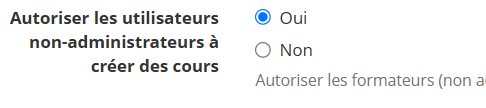 2. Activer l’option Autoriser les non administrateurs à créer des cours