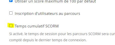 3. Décochez l’option « Temps cumulatif SCORM ».