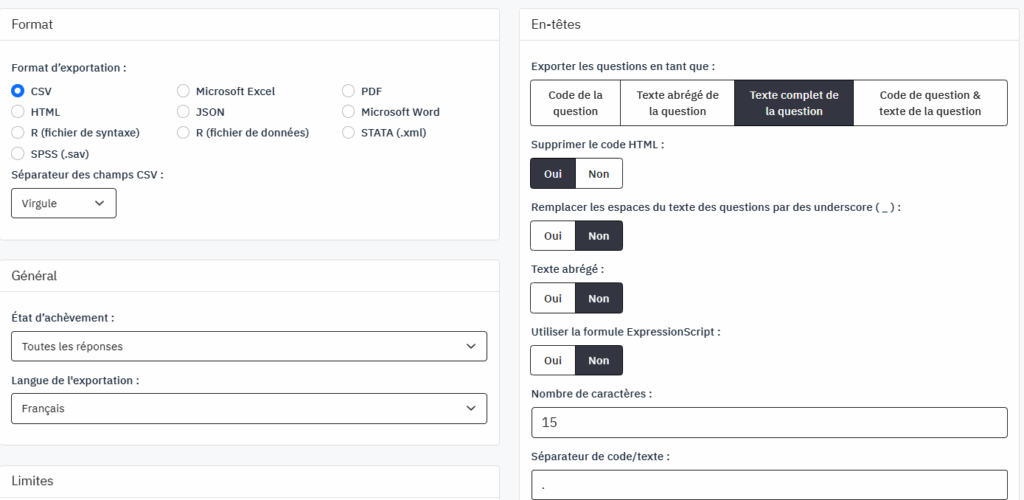 Puis sur cette nouvelle page choisir en haut Exporter > Exporter les réponses