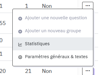 Dans la liste des questionnaire choisir Statistiques dans le menu trois petits point a droite de la ligne